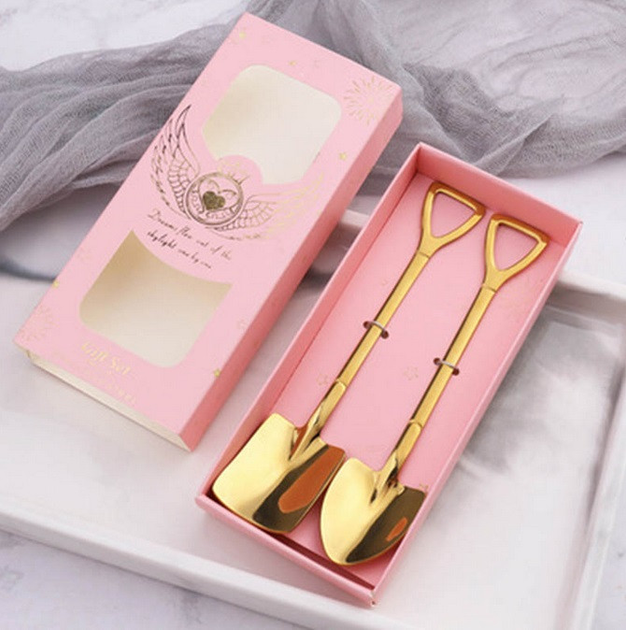 Набір десертних ложок CQ у формі лопати (2 шт., неіржавка сталь, Gold)