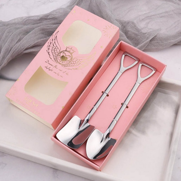 Набір десертних ложок CQ у формі лопати (2 шт., неіржавка сталь, Silver)