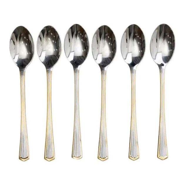 Набір ложок для кави 6 штук з нержавіючої сталі ложки для кави 12.3 см Срібло із золотим обрамленням HP-20-35