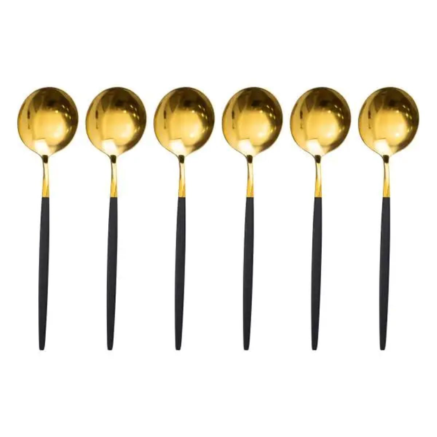 Набір столових ложок 6 штук 21 см із нержавіючої сталі із дзеркальним поліруванням чорний із золотом