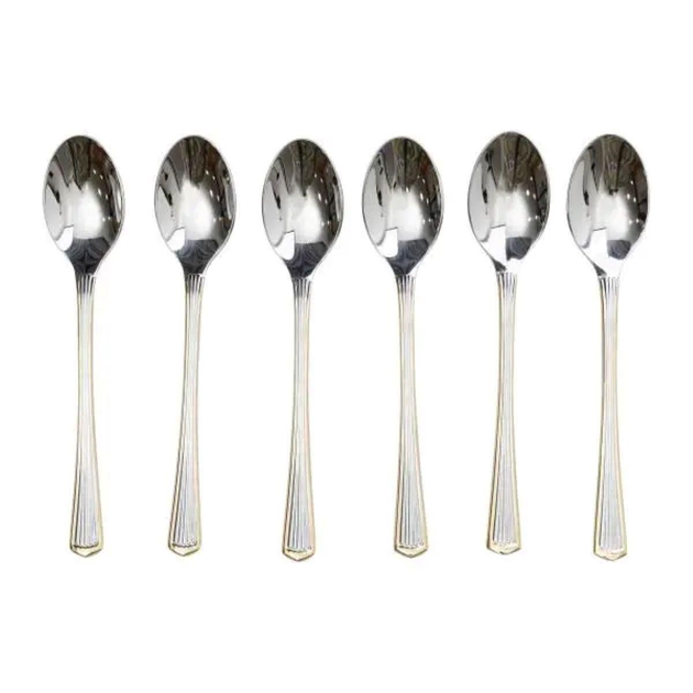 Набір чайних ложок 6 штук ложки для чаю з нержавіючої сталі 15.3 см Срібло із золотим обрамленням HP-20-33