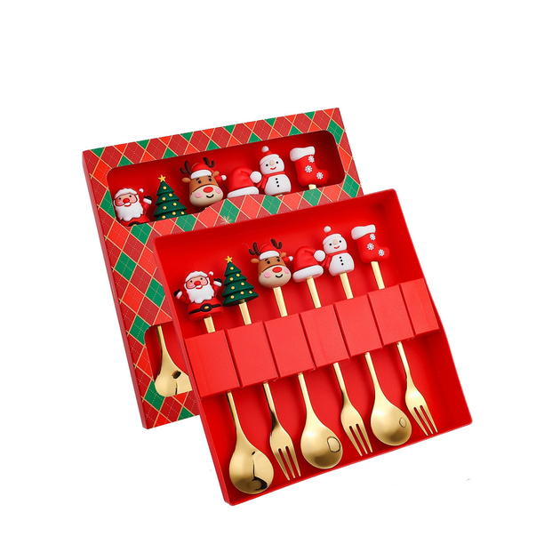 Новорічний подарунковий набір з ложок і виделок подарунок столові прибори Honey Fashion Accessories золотистий (17-4)