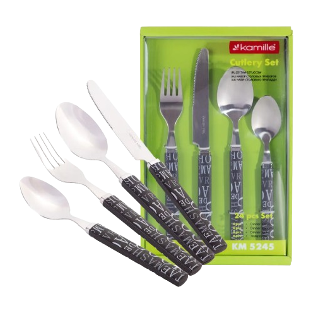 Набір столових приборів 24 предмети пластикові ручки чорний 5245 KAMILLE