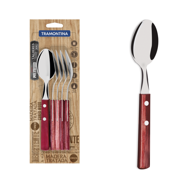 Набір столових ложок Tramontina Polywood 6 шт. нержавіюча сталь червоне дерево