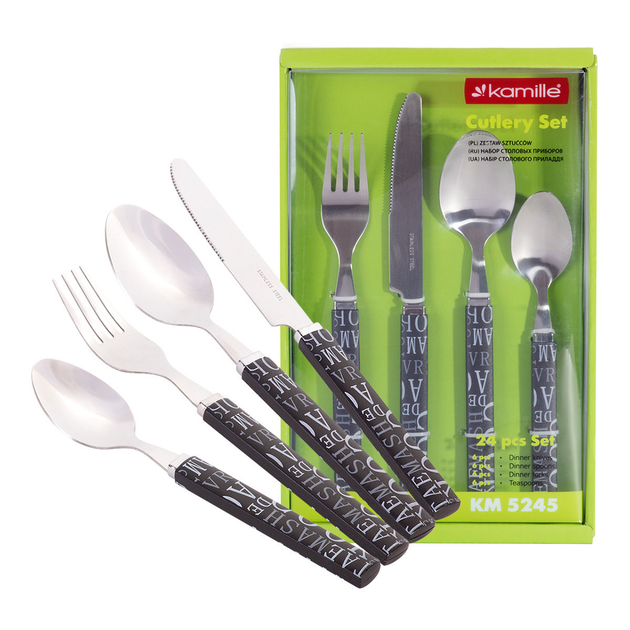 Набір столових приборів 24 шт Kamille із пластиковими ручками