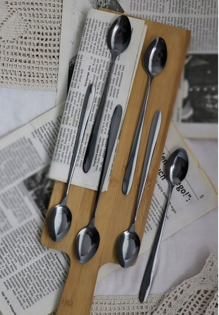 Набір довгих барних чорних чайних ложок 6 шт. (19.5 см.) 22082228 - десертні, металеві