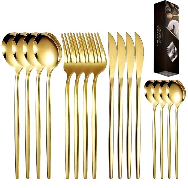Столові прибори набір в коробці 16 предмети (4 ложок столових , 4 ложок чайних , 4 виделок , 4 ножів) Золотистий
