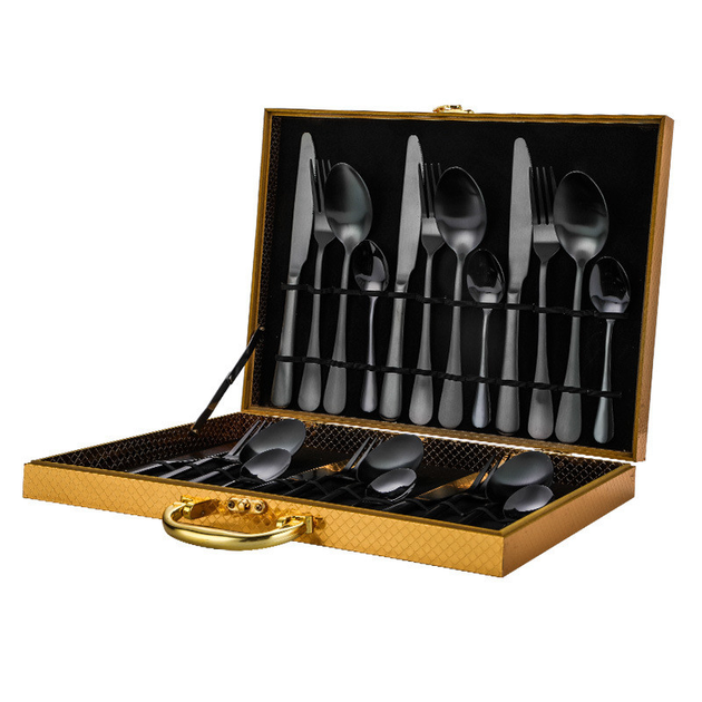 Набір столових приборів 24 х 6 персон Нержавіюча сталь Золоті з чорним велика Коробка