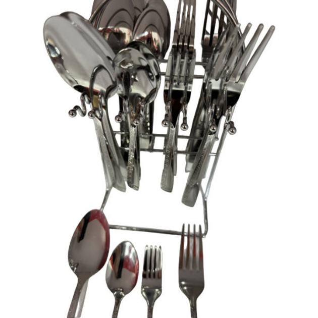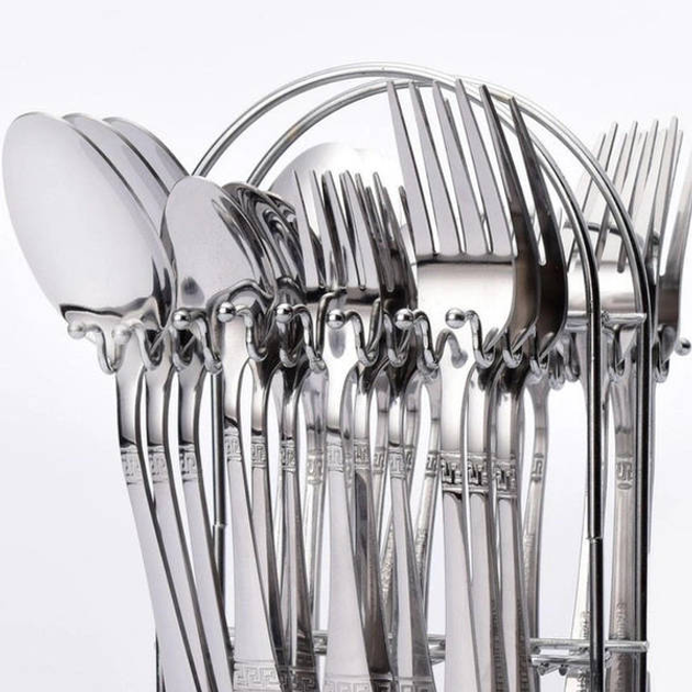 Набір столових приладів на підставці з нержавіючої сталі, 24 предмети, 6 персон, сріблястий