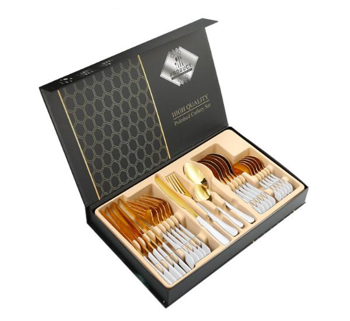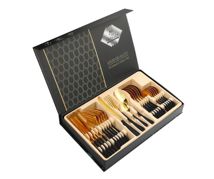 Набір столових приборів 24 х 6 персон Нержавіюча сталь Золоті з білим Коробка