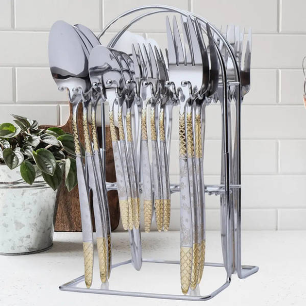 Набір столових приладів на підставці, нержавіюча сталь, 24 предмети, глянсова поверхня, золото