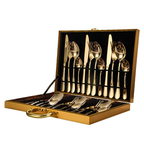 Набір столових приладів 24 шт х 6 персон Нержавіюча сталь Золото Подарунковий Кейс