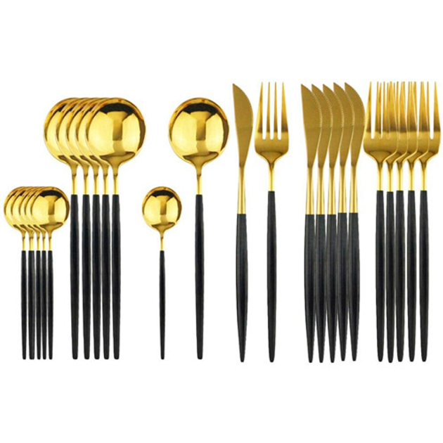 Набір столових приборів 24 предмети, нержавіюча сталь, золотий та чорний Без бренду