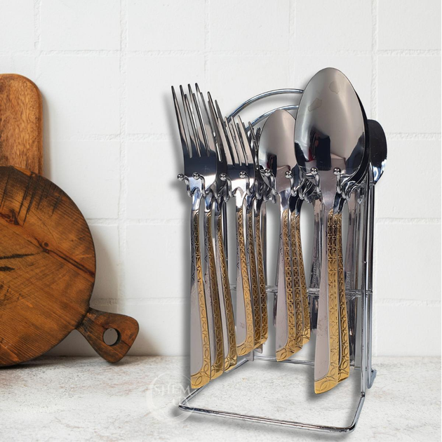 Набір столового приладдя Top Kitchen з нержавіючої сталі 24 предмети на 6 персон, на підставці KSD-24