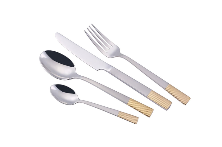 Набір столових приборів золотий на 6 персон 24 предмети матове покриття з високоякісної нержавіючої сталі