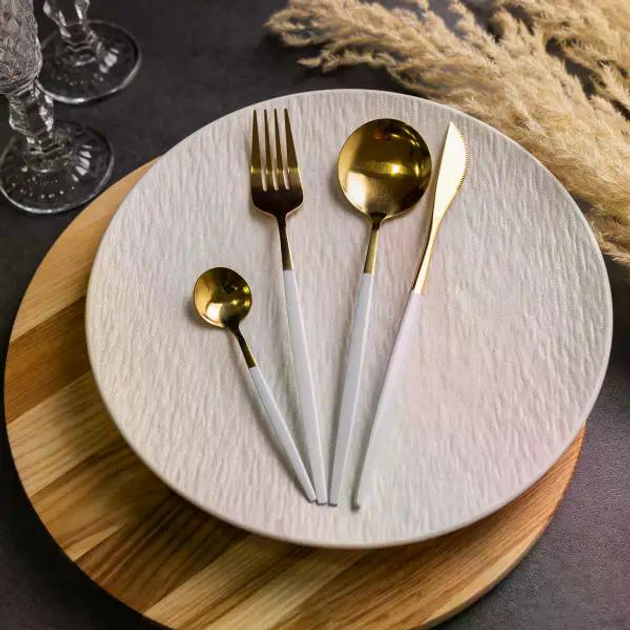 Набір столових приборів золотисто-білий на 6 персон 24 предмета з високоякісної нержавіючої сталі