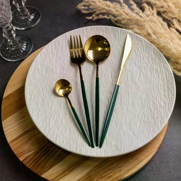 Набір столових приборів золотисто-зелений на 6 персон 24 предмета з високоякісної нержавіючої сталі
