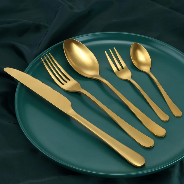Набір столових приборів BEWOS на 6 персон, 30 предметів, матове золото, ножі, виделки, ложки для кухні та сервірування