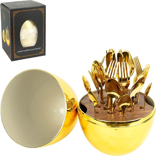 Набір столових приладів на 6 персон із нержавіючої сталі 24 штуки з підставкою Яйце Білий (121-HP7889)