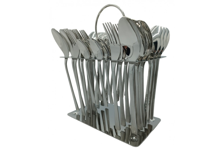 Набір столових приладів на 6 персон Вилки 6 шт, Ложки 6 шт, Ножі 6 шт, Чайні ложки 6 шт, в підставці Gold