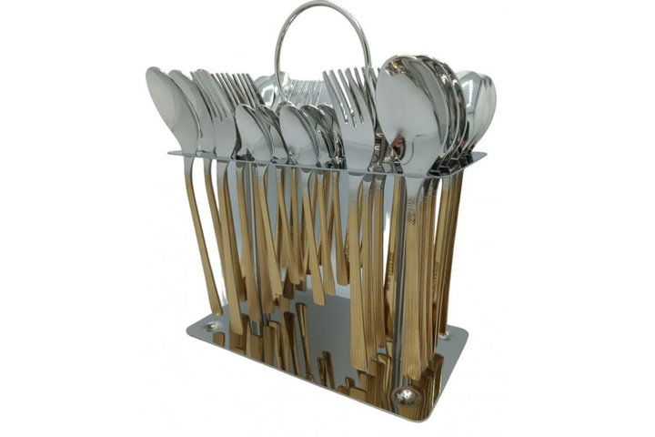 Набір столових приладів на 6 персон із нержавіючої сталі 24 штуки золотих з підставкою Яйце Чорний HP78810 (A-032626)
