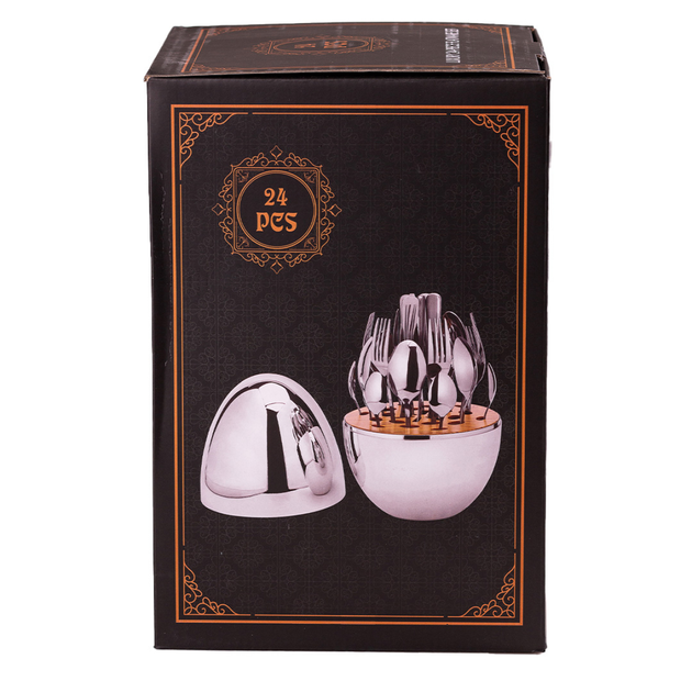 Набір столових приборів на 6 персон із нержавіючої сталі 24 штуки золотих з підставкою "Яйце" Чорний