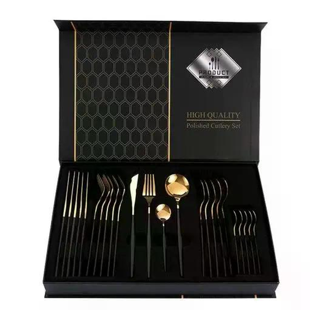 Набір столових приборів 24 предмети набір ложок виделок і ножів на 6 персон Чорний