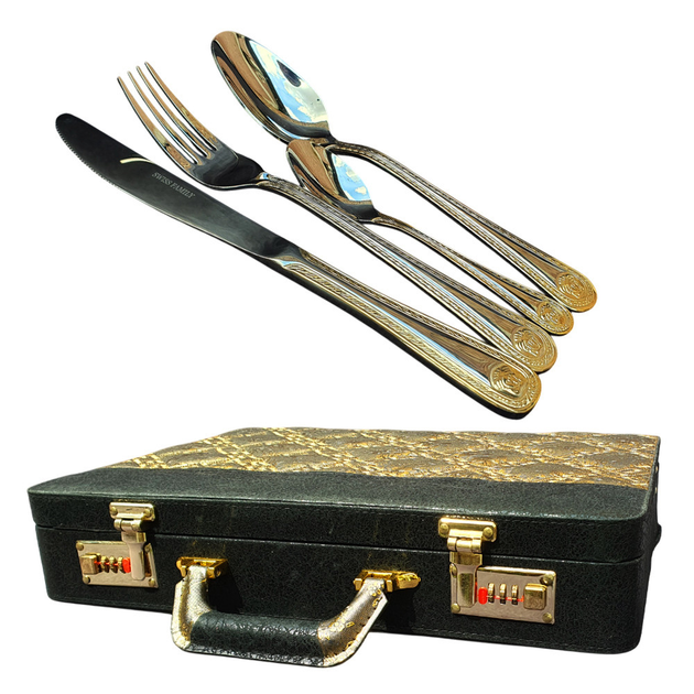Набір столових приладів Swiss Family 187 Версаче на 12 персон у подарунковому кейсі 48 предметів VERSACE