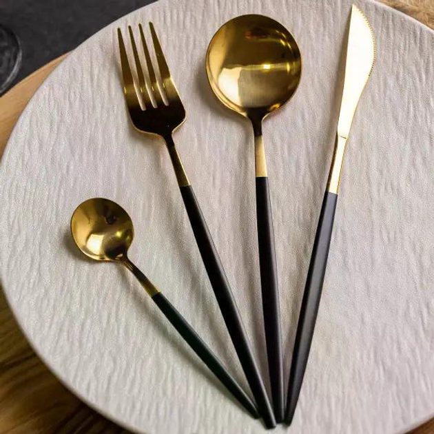 Набір столових приборів золотисто-чорний на 6 персон 24 предмета з високоякісної нержавіючої сталі