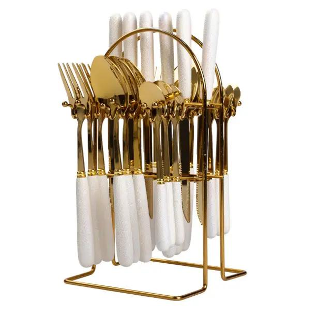 Набір столових приборів із нержавіючої сталі 24 штуки з підставкою Золото/Білий