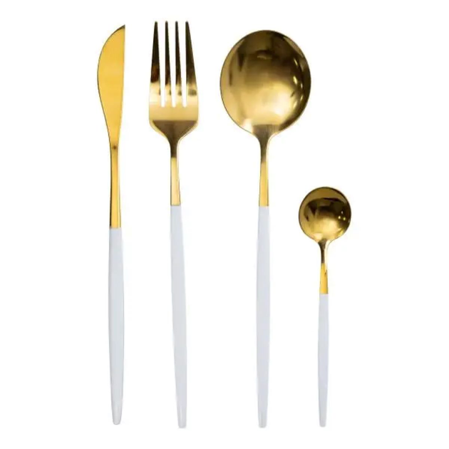 Набір столових приборів 24 предмети столовий набір на 6 персон Золотистий з білим HP-20-47