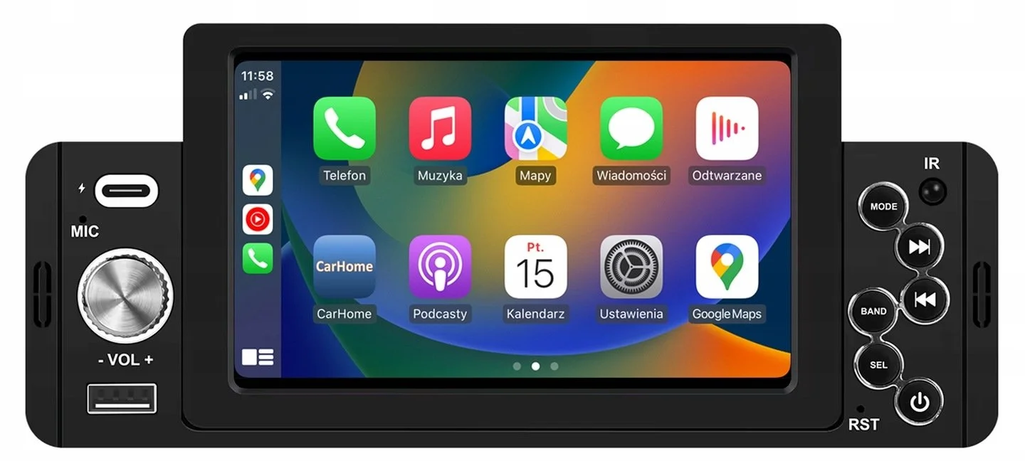 Автомагнітола Hikity / 5.1" / Сенсорна / Apple CarPlay / Android Auto / Bluetooth / GPS / USB / 1DIN Уцінка