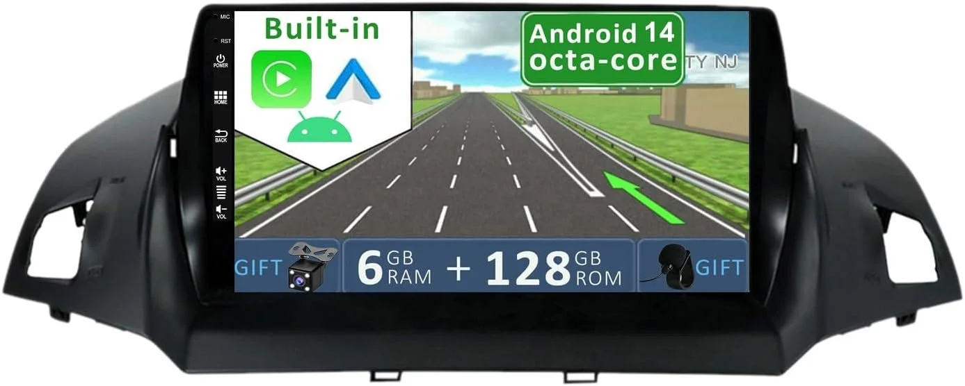 Штатна автомагнітола YUNTX для Ford Kuga Escape C-max 2013-2017 / 9" / Сенсорна / 6/128Гб / Android 14 / Apple CarPlay / And