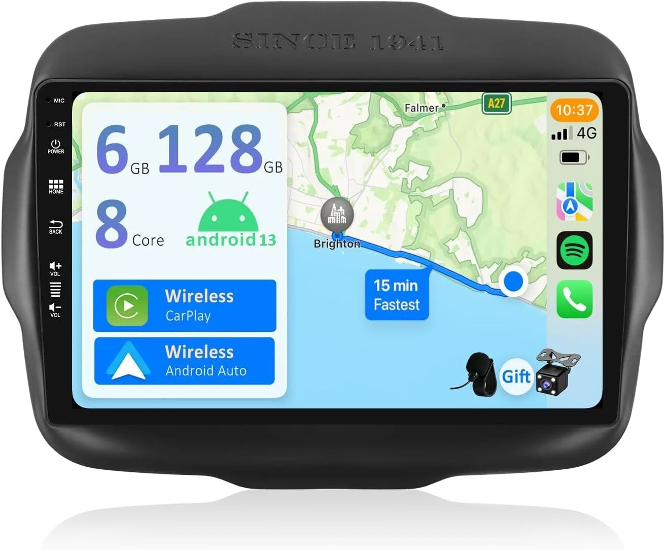 Штатна автомагнітола YUNTX BX-D04 для Jeep Renegade (2015-2018) / 9" / Сенсорна / 6/128Гб / Android 13 / Apple CarPlay / And