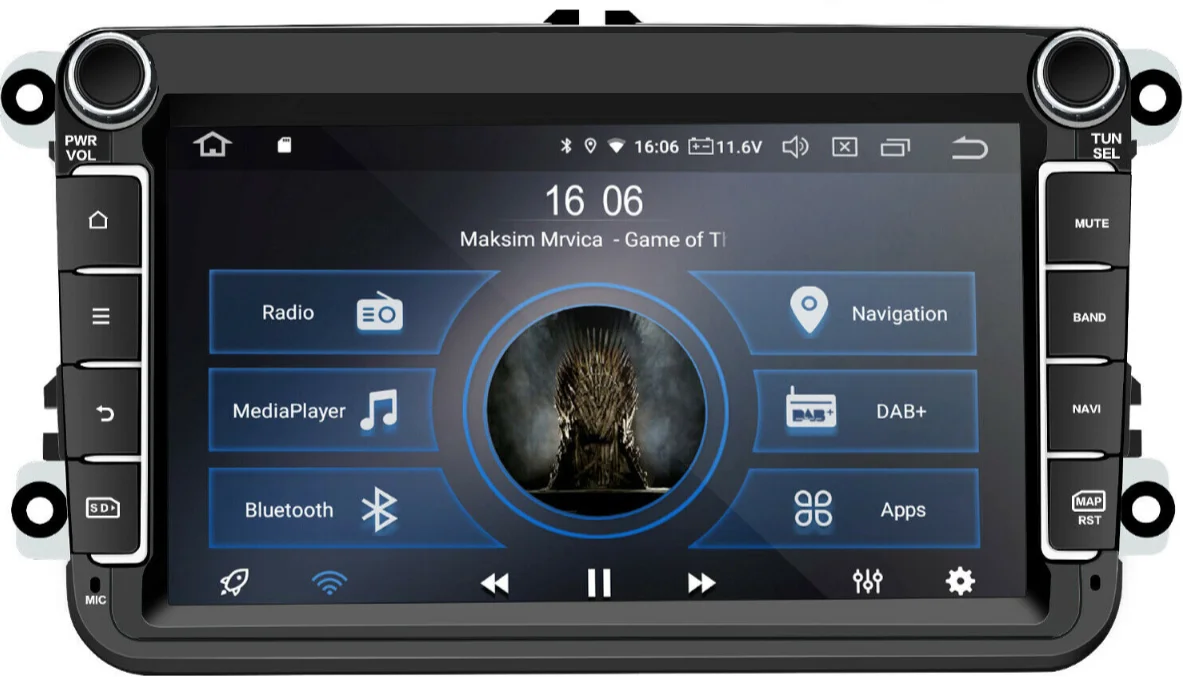 Штатна автомагнітола M.I.C. AV8V4 для VW Skoda Seat / 8" / Сенсорна / 2/16Гб / Android 6.1 / Bluetooth / WI-FI / GPS / USB /