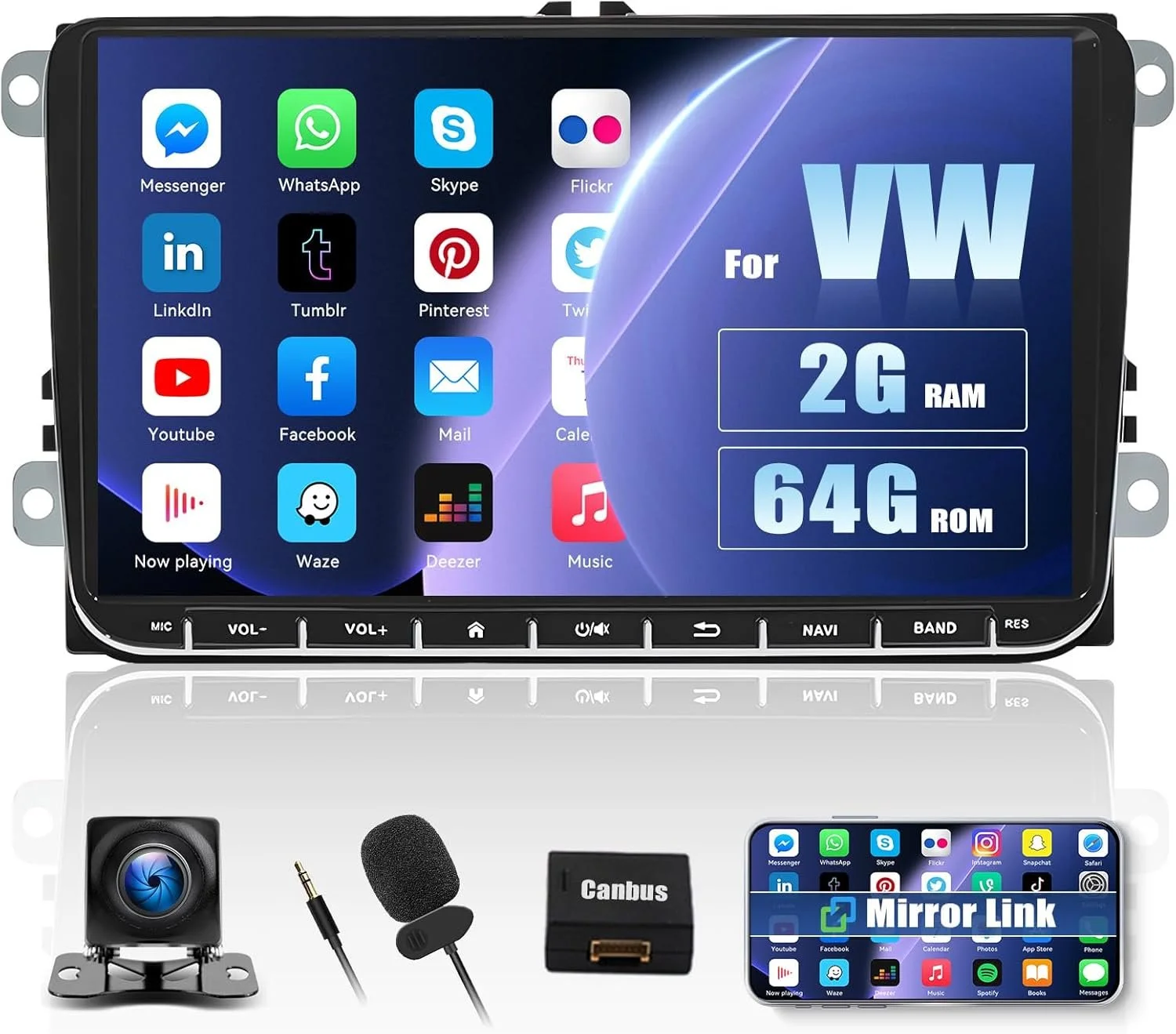 Штатна автомагнітола Hikity для VW Golf 5 Golf 6 Passat B6 Touran EOS Polo / 9" / Сенсорна / 2/64Гб / Android 13 / Bluetooth