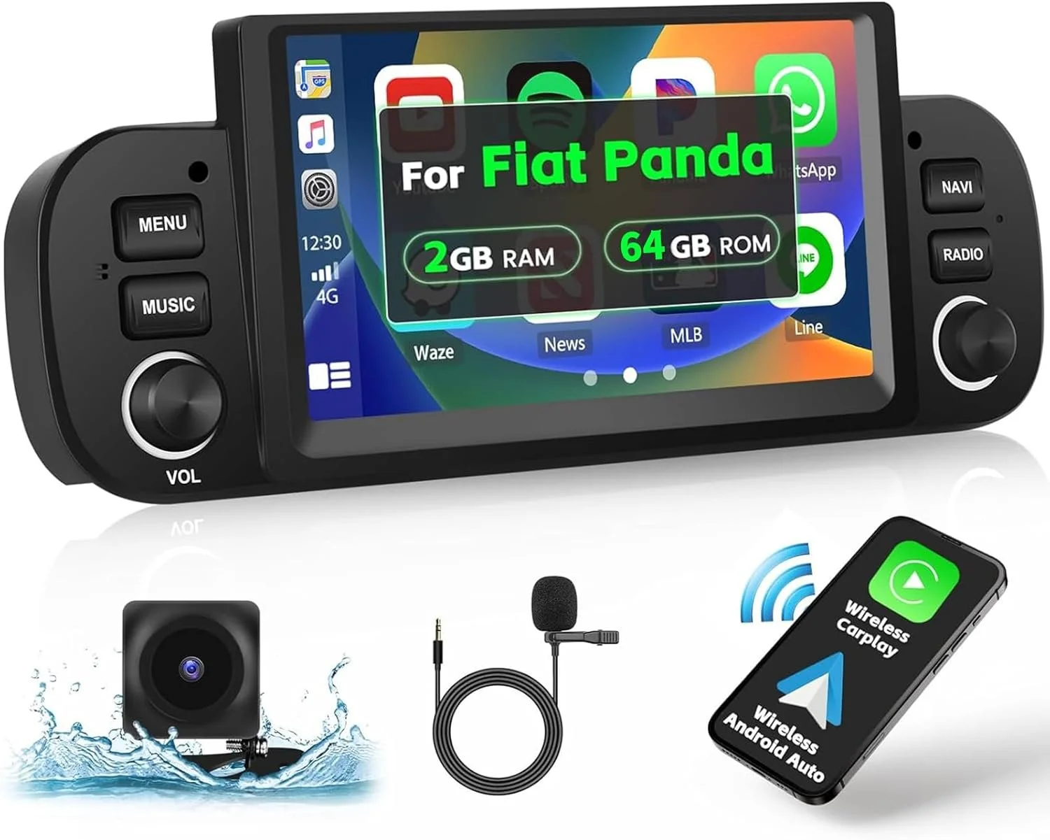 Штатна автомагнітола Hikity для Fiat Panda 2013-2020р / 7" / Сенсорна / 2/64 Гб / Android 13 / Carplay / Android Auto / WiFi