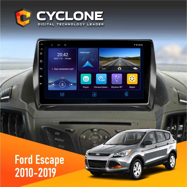 Штатна магнітола Cyclone C9-008 4+64Gb. DSP. CARPLAY. QLED 2K Ford Escape 2012-2019