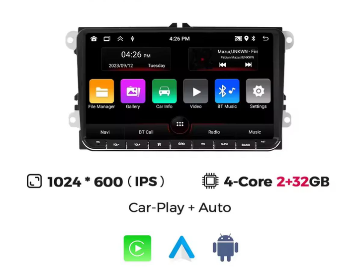 Автомагнітола CARPURIDE W903 / 9.3" / Сенсорна / Apple CarPlay / Android Auto / Super Link / Bluetooth / WI-FI / GPS / FM /