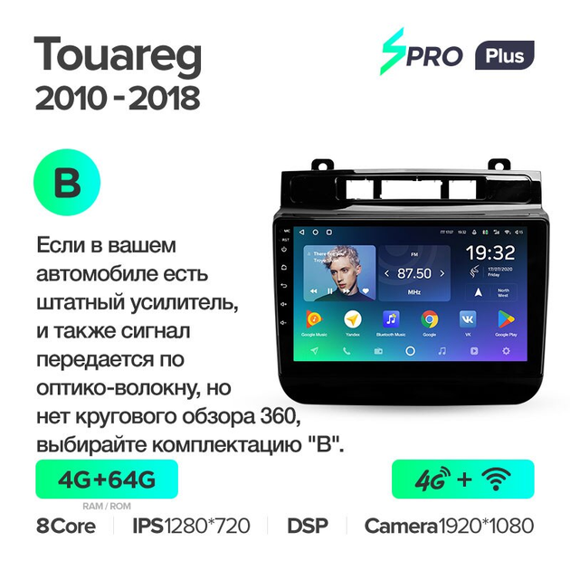 Штатна магнітола Volkswagen Touareg 2010 - 2018 Android SPRO-PLUS 4+64G Wi-Fi Варіант B