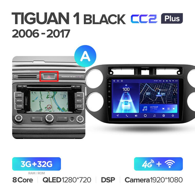Штатна магнітола Volkswagen Tiguan 1 2006 - 2016 Android CC2-PLUS 6+128G Wi-Fi Варіант А