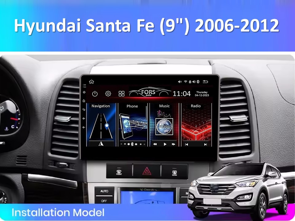 Штатная магнитола FORS.auto М300 для Hyundai Santa Fe (3+32Gb, 9") 2006-2012 2041-М300