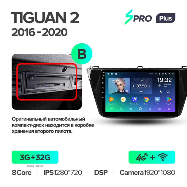 Штатна магнітола Volkswagen Tiguan 2 2016 - 2018 Android SPRO-PLUS 6+128G Wi-Fi Варіант B