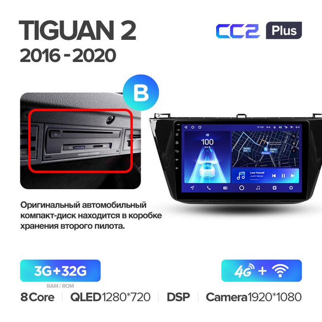 Штатна магнітола Volkswagen Tiguan 2 2016 - 2018 Android CC2-PLUS 4+64G Wi-Fi Варіант B