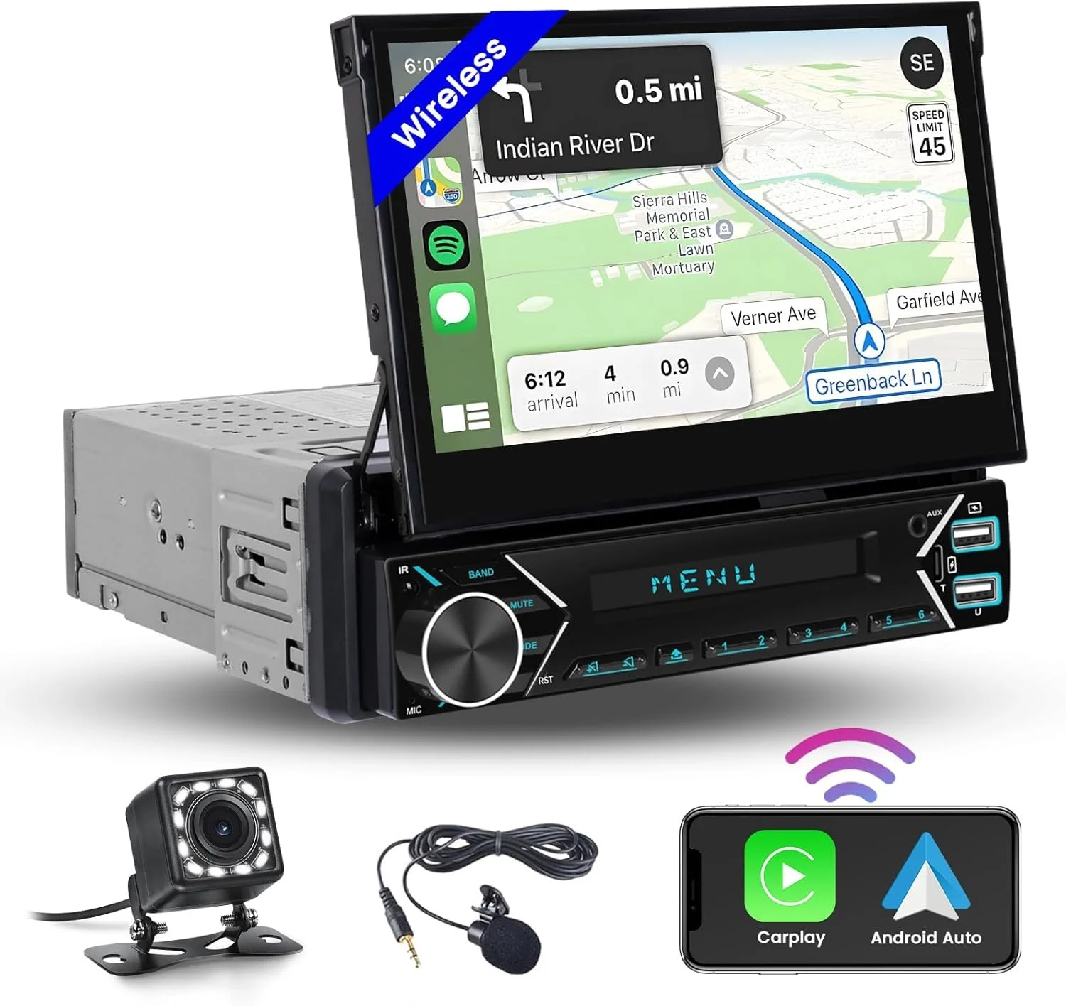 Автомагнітола WSRADIOKITS / 7" / Сенсорна / Apple CarPlay / Android Auto / Bluetooth / FM / AUX / USB Новий