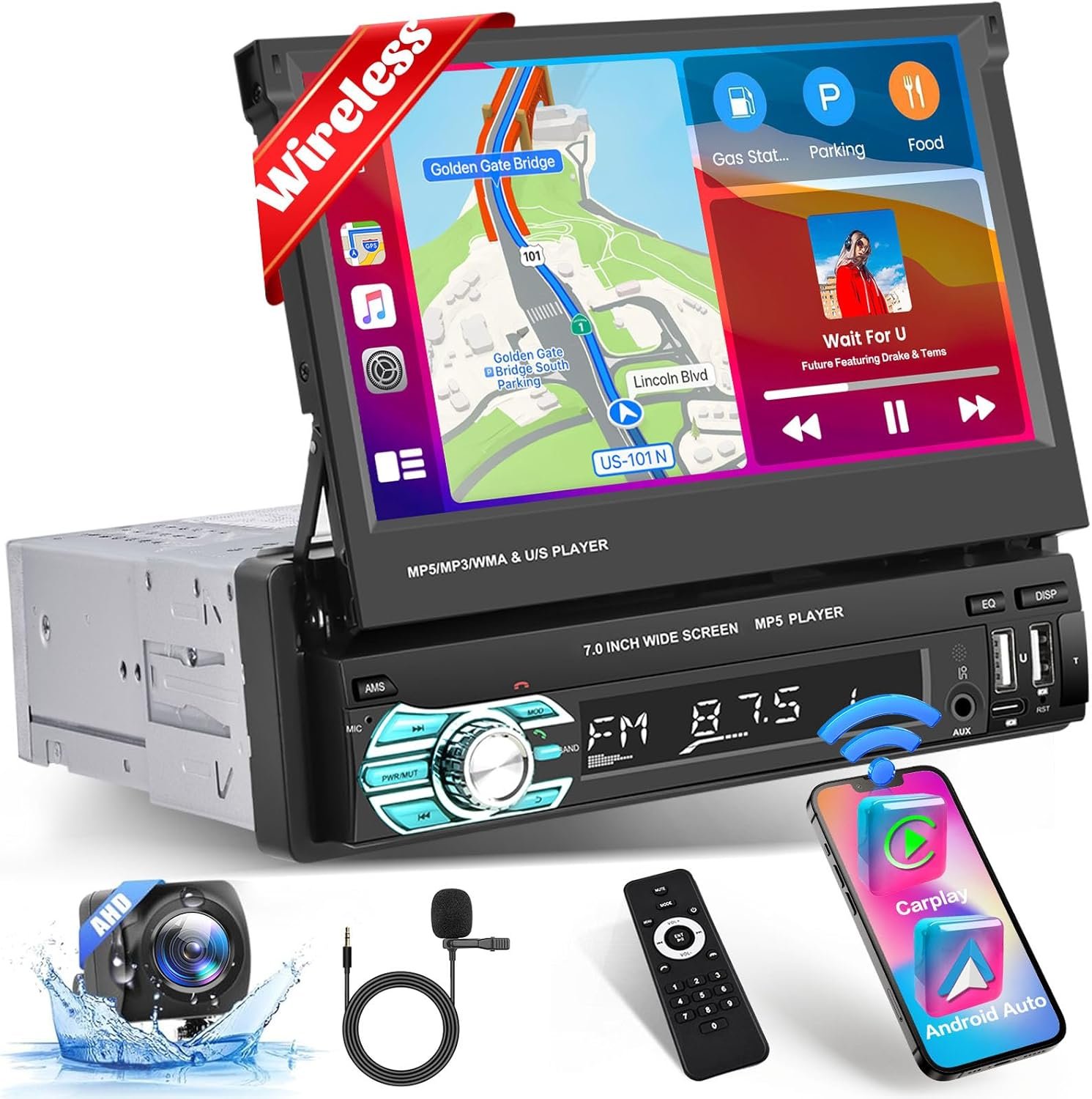 Автомагнітола Hikity / 7" / Сенсорна / Apple CarPlay / Android Auto / Bluetooth / USB / AUX / 1DIN Уцінка