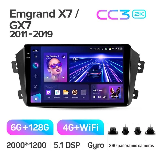 Штатна магнітола з круговим оглядом TEYES CC3 6+128 GB 360° GEELY EMGRAND X7 1 GX7 EX7 2011-2019 9" 2K