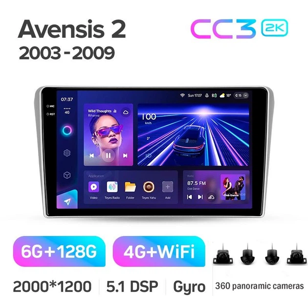 Штатна магнітола з круговим оглядом TEYES CC3 6+128 GB 360° TOYOTA AVENSIS T250 2 II 2003-2009 9" 2K