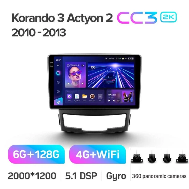 Штатна магнітола з круговим оглядом TEYES CC3 6+128 GB 360° SSANGYONG KORANDO 3 ACTYON 2 2010-2013 9" 2K