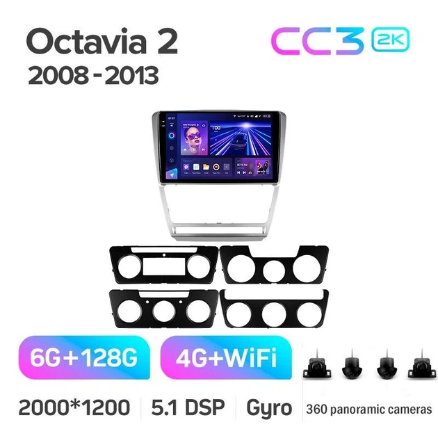 Штатна магнітола з круговим оглядом TEYES CC3 6+128 GB 360° SKODA OCTAVIA 2 A5 2008-2013 10" SILVER 2K